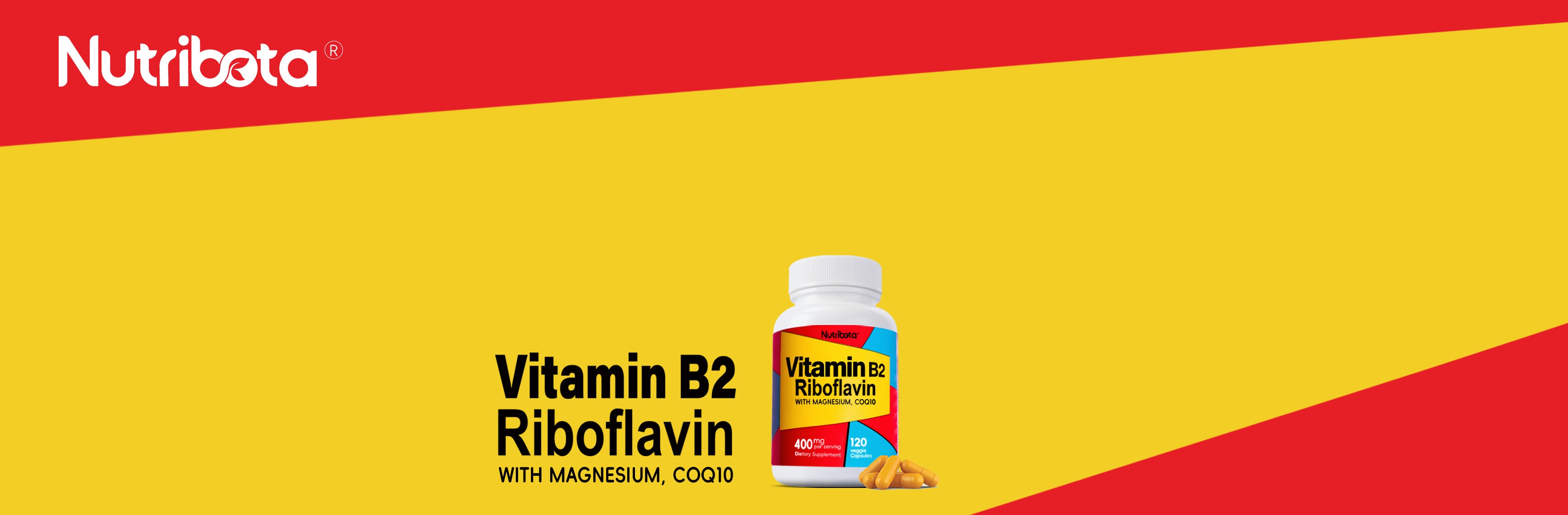 Nutribota Vitamin B2 Riboflavin 400mg with Magnesium & CoQ10for Adults,Vitamin B2 capsules forEnergy,Migraine Relief,120 Veggie Capsules